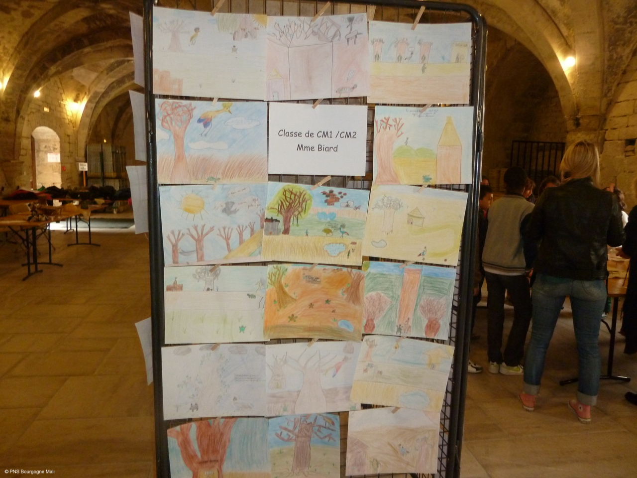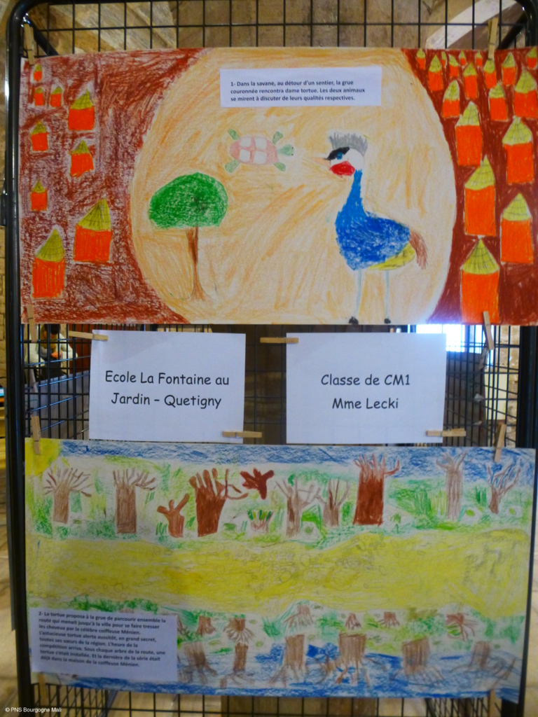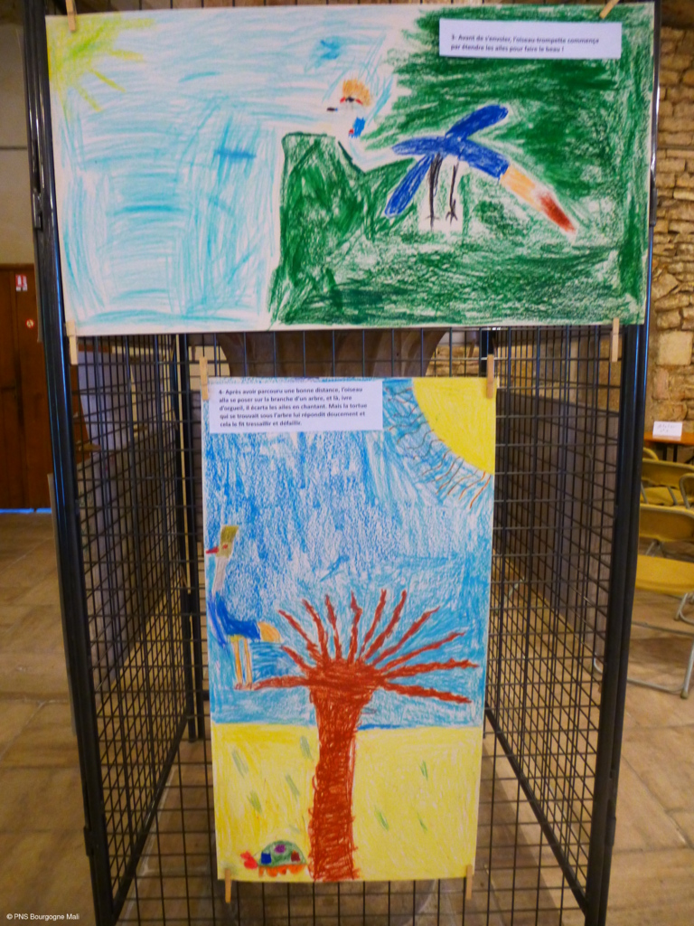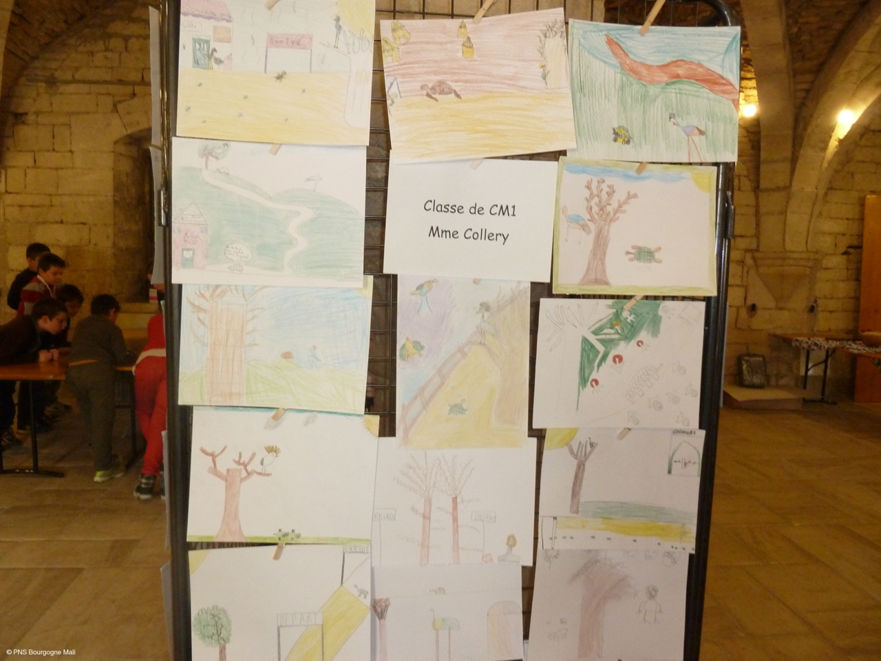 cette séance a permis de regrouper au cellier de clairvaux ,pendant trois journées, les enfants des écoles primaires ayant bénéficié de nos interventions sur l'éducation au développement. les travaux des enfants ont été exposés : dessins et guitas fabriquées par leurs soins. Les dessins ont été réalisés sur le thème soit de la fable "la tortue et la grue couronnée" soit d'après le conte "l'arbre à pluie". 4 ateliers ont été organisés : qui suis-je, parfums d'ailleurs, les contes d'afrique, les préjugés et une séance sur la musique.