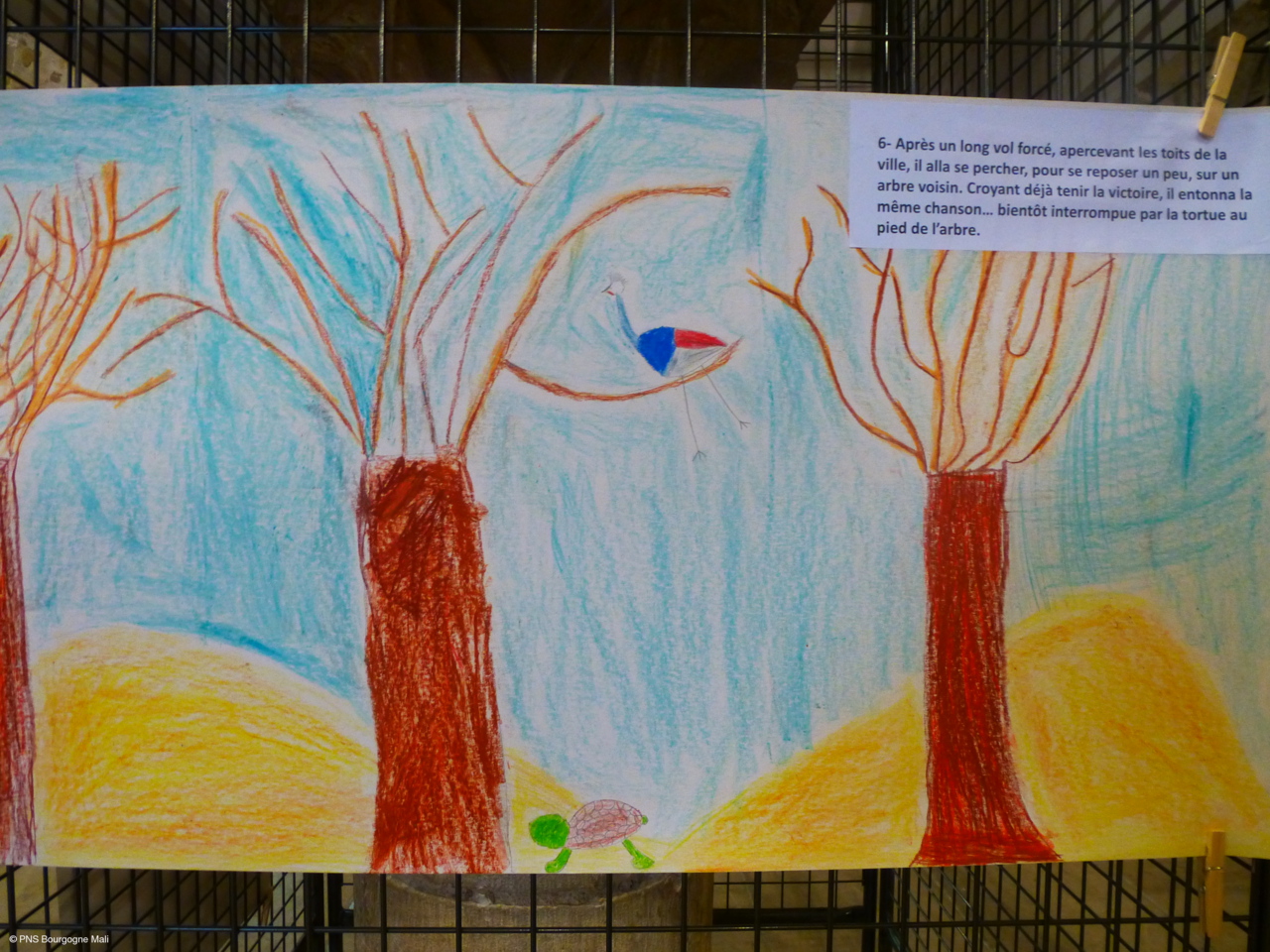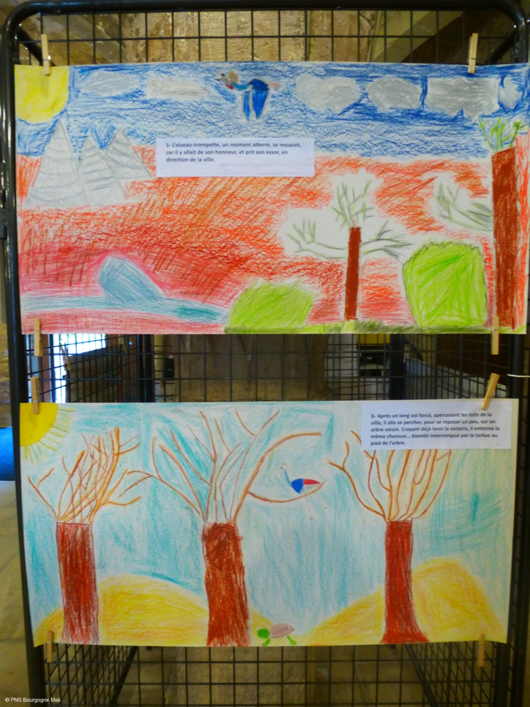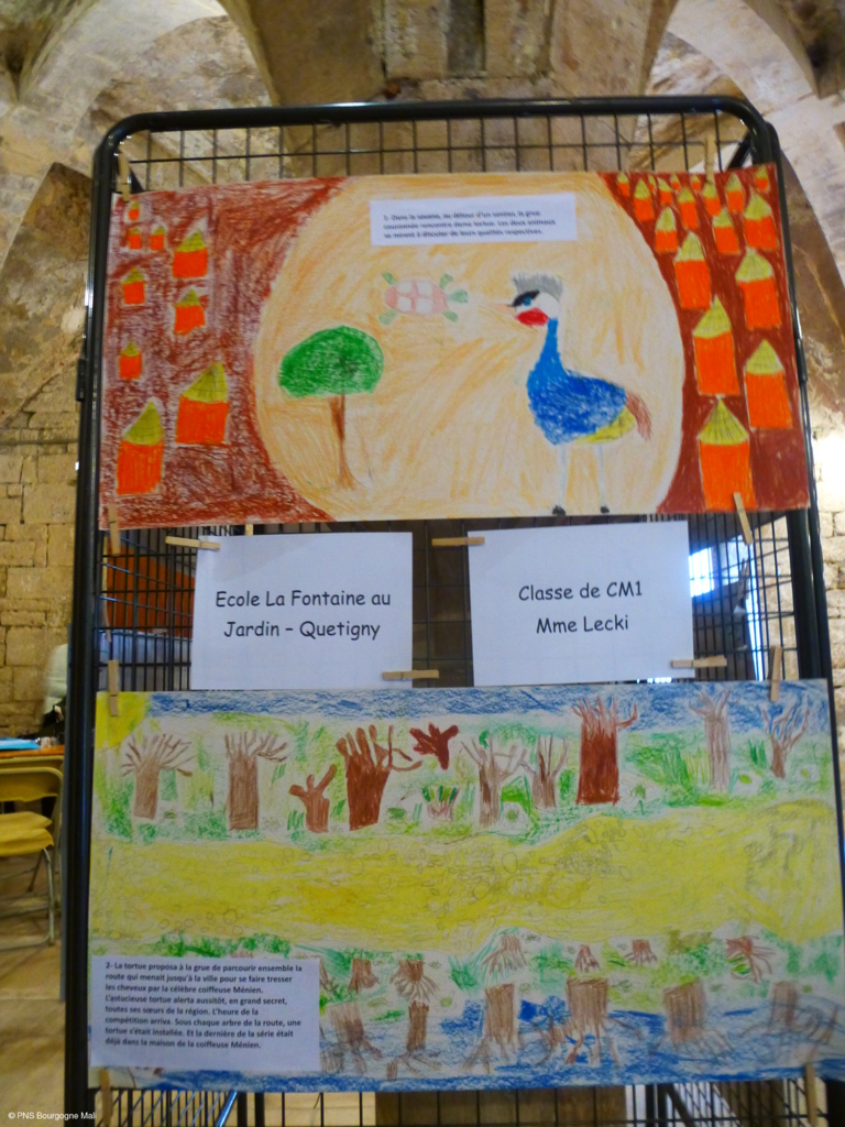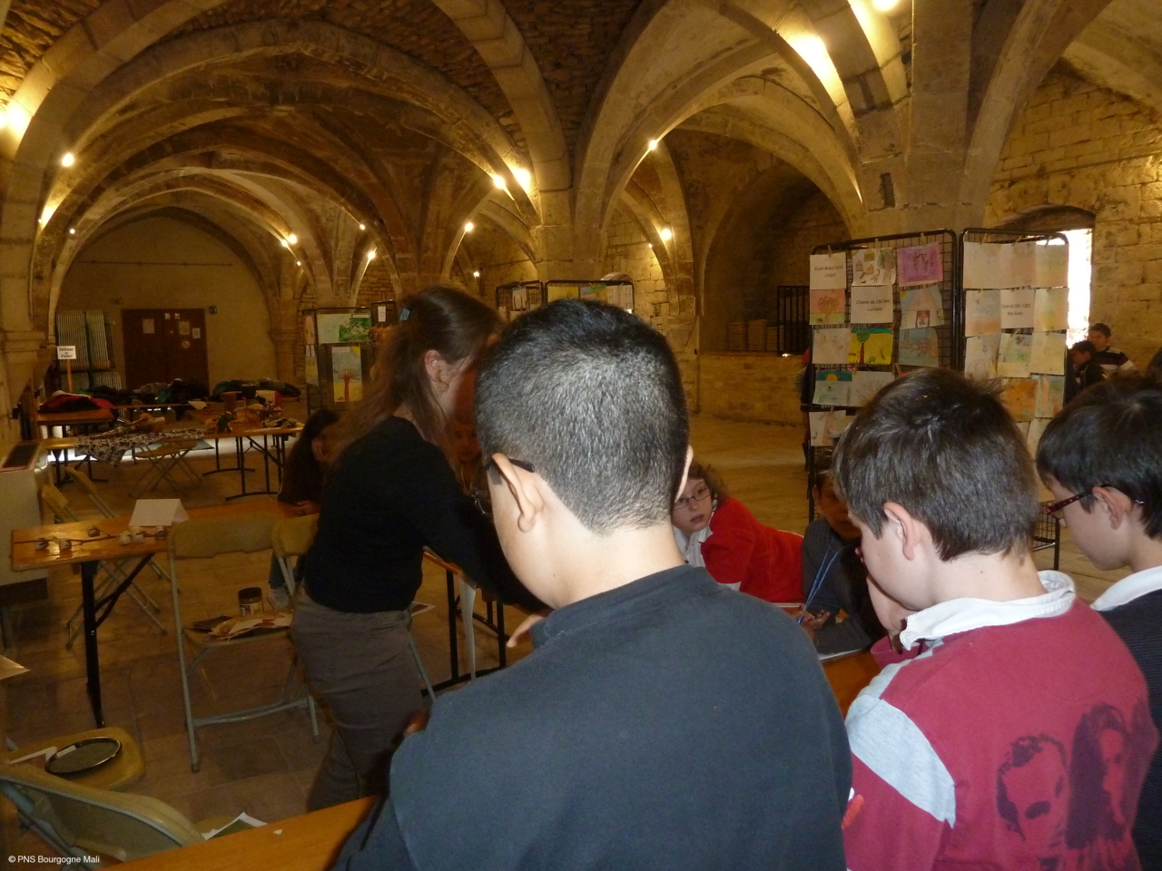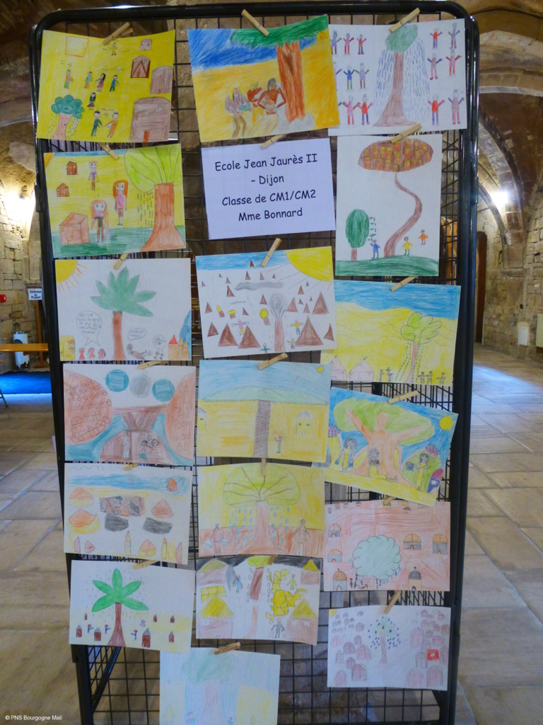 cette séance a permis de regrouper au cellier de clairvaux ,pendant trois journées, les enfants des écoles primaires ayant bénéficié de nos interventions sur l'éducation au développement. les travaux des enfants ont été exposés : dessins et guitas fabriquées par leurs soins. Les dessins ont été réalisés sur le thème soit de la fable "la tortue et la grue couronnée" soit d'après le conte "l'arbre à pluie". 4 ateliers ont été organisés : qui suis-je, parfums d'ailleurs, les contes d'afrique, les préjugés et une séance sur la musique.