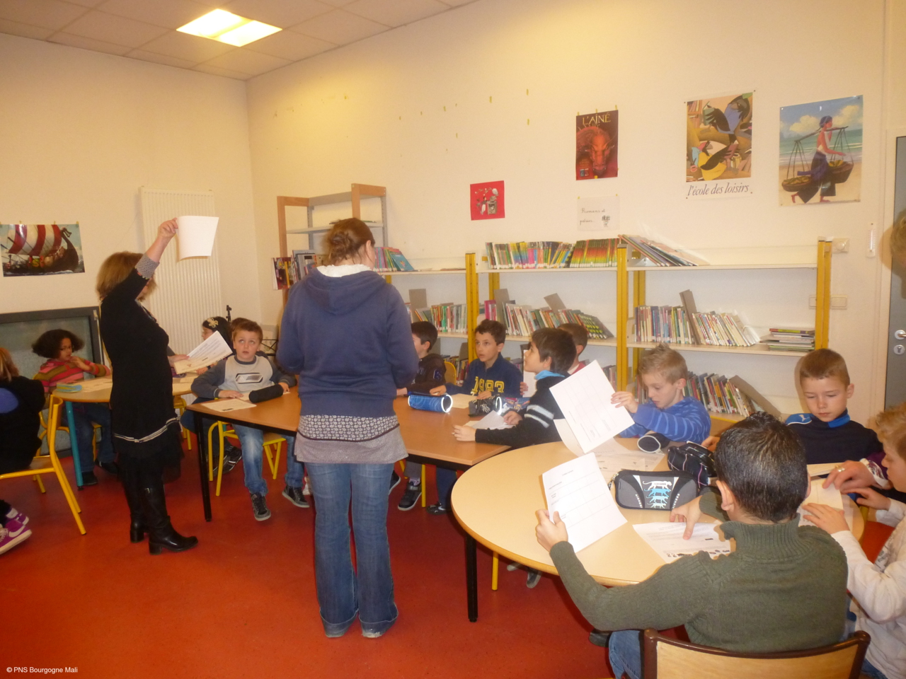 Voici les photos de nos séances d'éducation au développement dans les écoles du grand dijon, trois séquences d'une demi journée consacrées l'une à la géographie suivie d' une thématique abordée par photo langage, choisie par l'école sur un thème proposé et intitulée "nos différences", une autre concernant la comparaison de deux fables (une française, l'autre malienne) pour arriver à une morale commune mais différente aussi , commune par les caractéristiques des personnages, différente par l'approche culturelle, une troisième séquence consacrée à la musique en afrique avec apprentissage d'une chanson congolaise. ces trois séquences étant suivies par un séquence "atelier des sens"