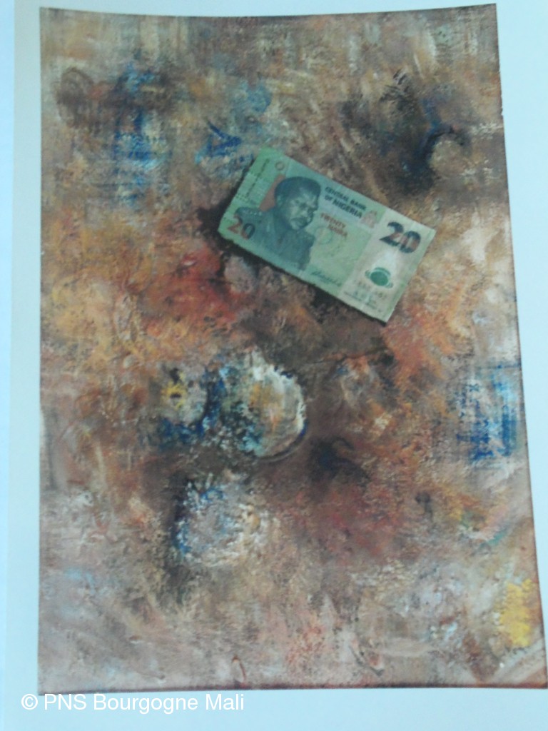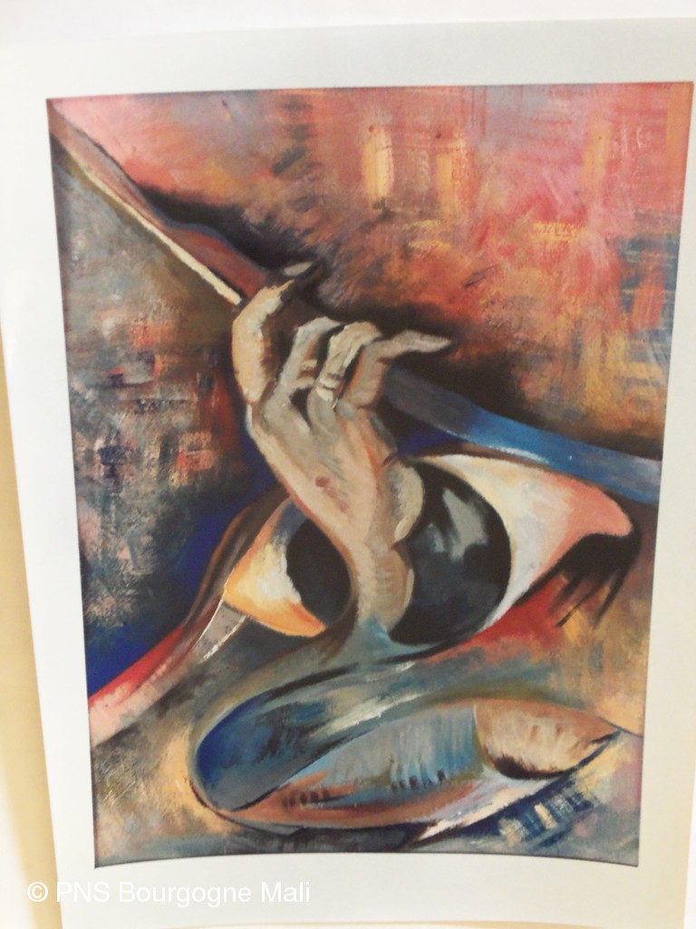 Nous avons fait la connaissance d' Amadou Piga Traoré, aujourd'hui professeur à l’INA (institut national des arts à Bamako), lorsqu'il travaillait dans les services de l'académie de Koulikoro. Aujourd'hui, il est artiste peintre et enseigne à l'INA. Nous avons monté un projet culturel ensemble qui se nomme "connivence" . Si « Je est un autre » ( Rimbaud ), si en moi vit un étrange étranger, l’altérité n’est-elle pas ce qui constitue l’humain ?Proches ou lointains, d’ici ou d’ailleurs, les artistes ont le don de faire saisir l’étrange ou le familier de leurs créations.Par la médiation d’une œuvre, des échanges sont possibles, d’un lieu à un autre, d’un continent à un autre .Qu’est-ce qui circule entre des œuvres témoignant à la fois de la singularité d’un artiste et de la particularité de sa culture ?Ce qui peut s’interroger, s’accorder, se répondre, n’est-ce pas ce qui fait connivence ?Où réside nos espérances et nos angoisses ? Qu’est ce qui, au travers des visions singulières et uniques des artistes, reste intrinsèquement et fondamentalement humain ? Là résident nos connivences. Des artistes bourguignons et des artistes maliens vont se retrouver ensemble, le temps d'une exposition à dijon, sur le thème de la "connivence", chacun créant son oeuvre en référence à cette thématique. Des ateliers seront proposés par les artistes aux enfants des écoles. Des classes vont aussi participer au projet et exposeront leur oeuvre.